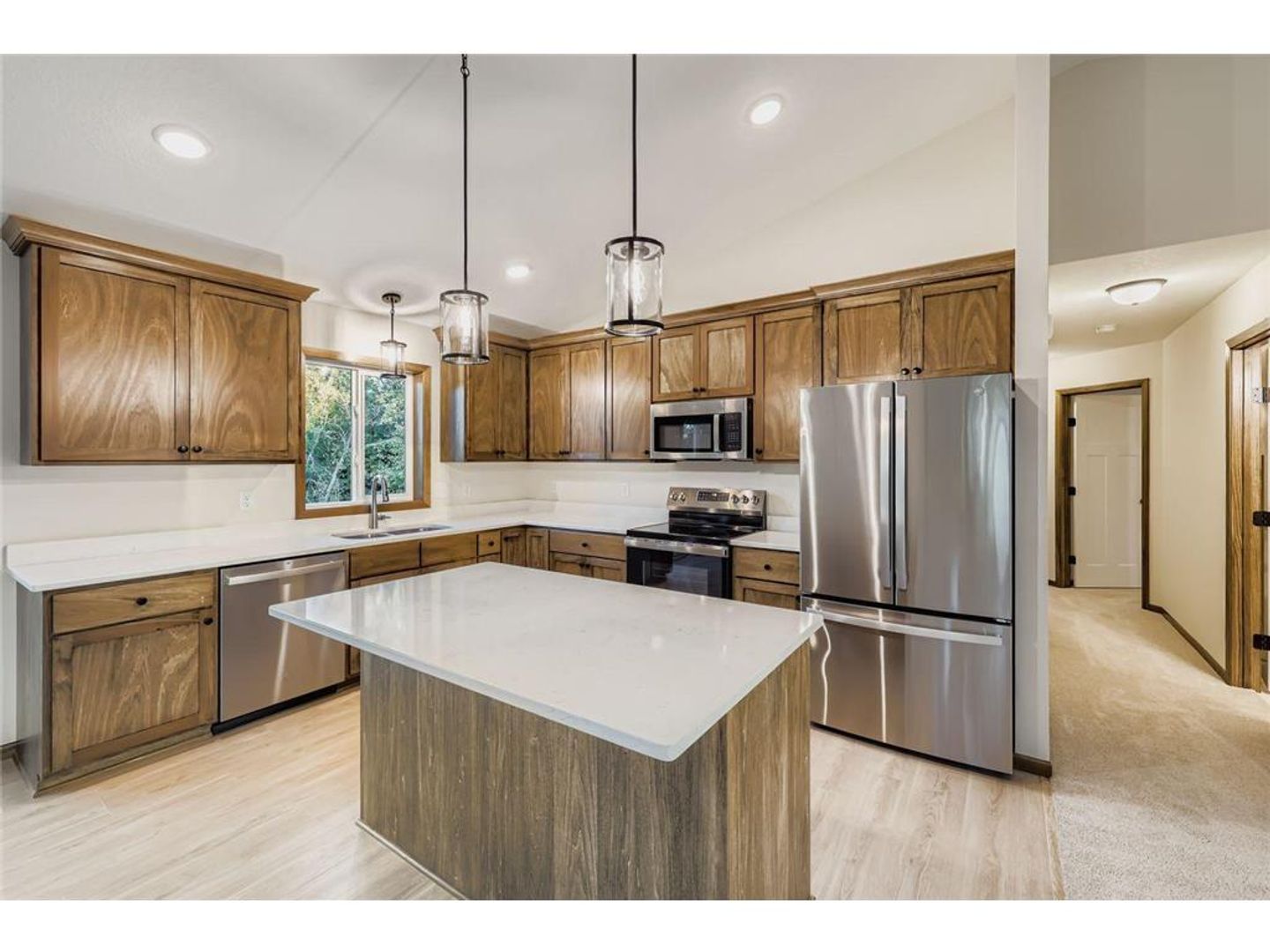Be the first to live in this Brand-New Home!  ALL NEW EVERYTHING THROUGHOUT!  Vaulted Ceilings, Primary Suite, Walk-In Closets, Gourmet Kitchen with Quartz Countertops and Center Island, Stainless Appliances, everything is All New and Sparkling Clean!  3 Bedrooms and the Primary Suite are all on the Main Level.  Huge Lower Level has large lookout windows, is climate controlled and is usable for a Bonus Room, Office, Exercise Room, Game Room or Storage.  Large Backyard for fun and pets.  3 Car Attached Garage.  Perfect Mounds View location is close to everything!  Tenant pays all utilities. This property does not participate in Section 8 housing. Application Fee $55, Lease Processing Administrative Fee $150, Security Deposit $2,695, Pet Deposit $500 per pet - refundable. Your well-behaved pets welcome on approval. Available December 1 or sooner!